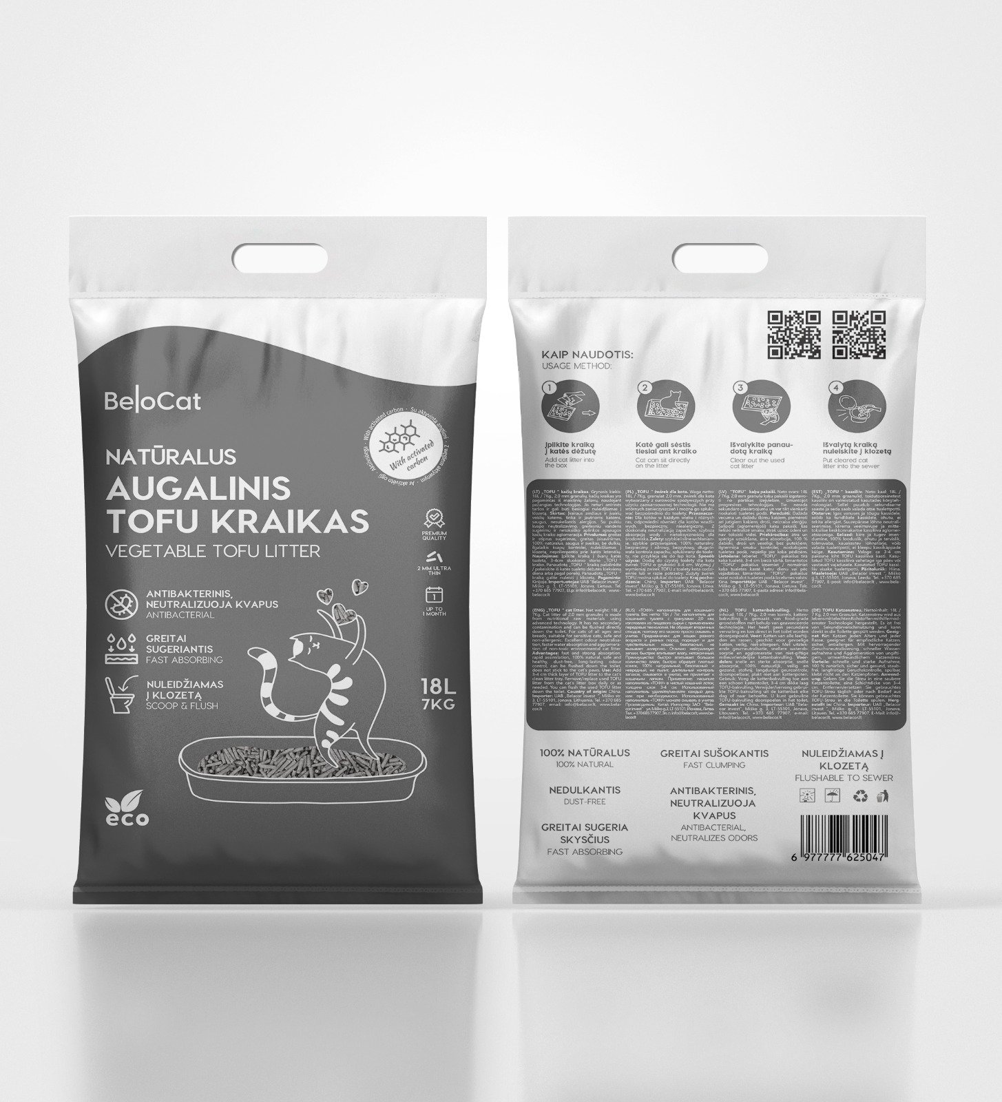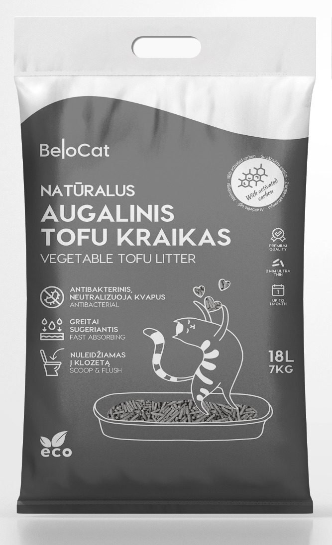 KAĶU PAKAIŠI “BeloCat” TOFU-18L/7Kg., (aktivētā ogle) 100% DABĪGI PAKAIŠI