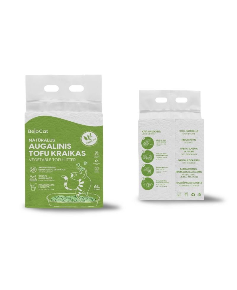 Zaļās tējas aromāta kaķu pakaišu TOFU apraksts