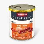 Animonda Grancarno Adult – pilnvērtīga konservu barība pieaugušiem suņiem no 1 līdz 7 gadu vecumam. Ar pievienotu liellopu un vistas gaļu.