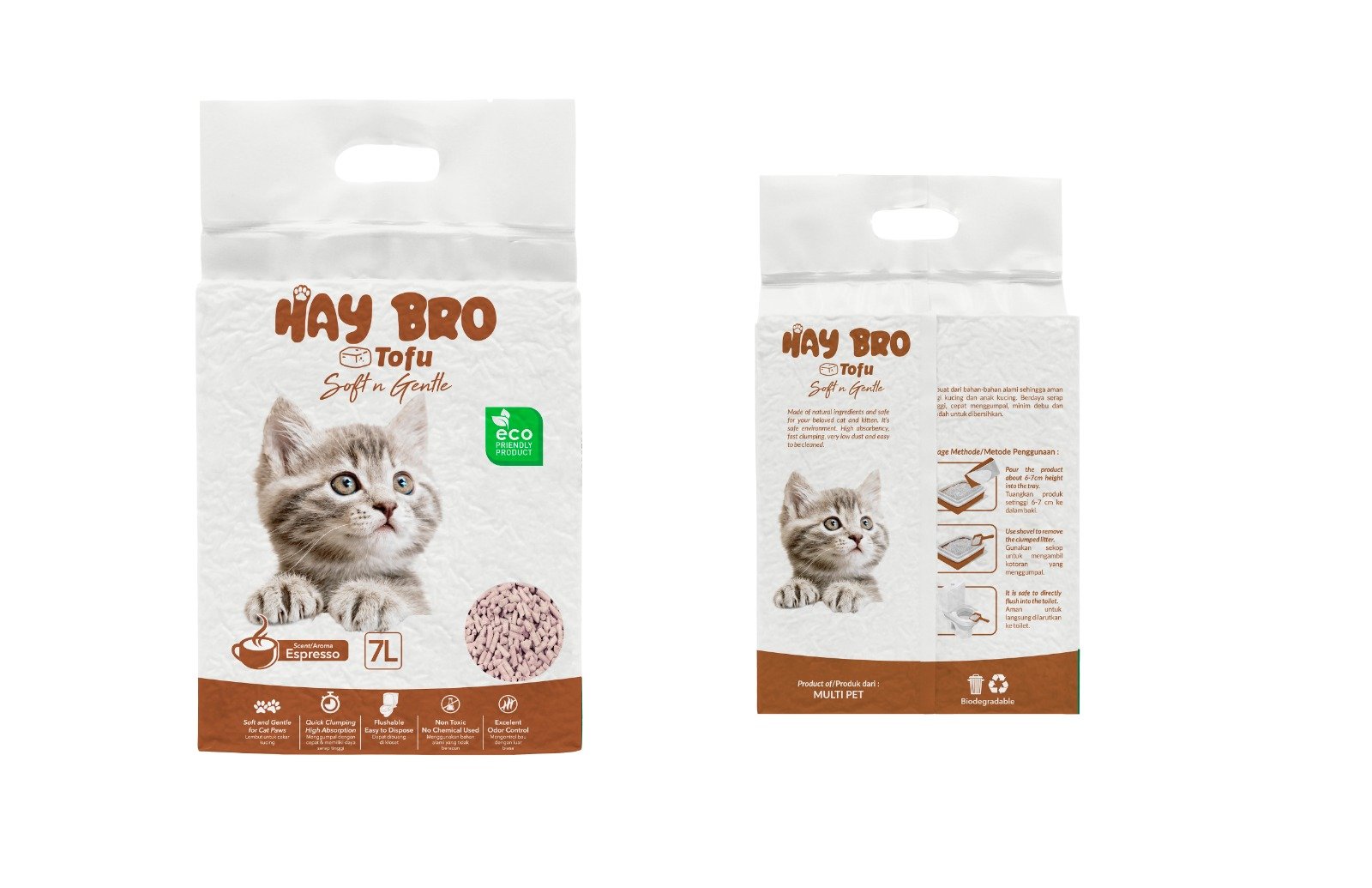 TOFU kraikas katėms „HayBro ” 7 L/2,5 Kg., (Espresso) 100% NATŪRALUS KRAIKAS